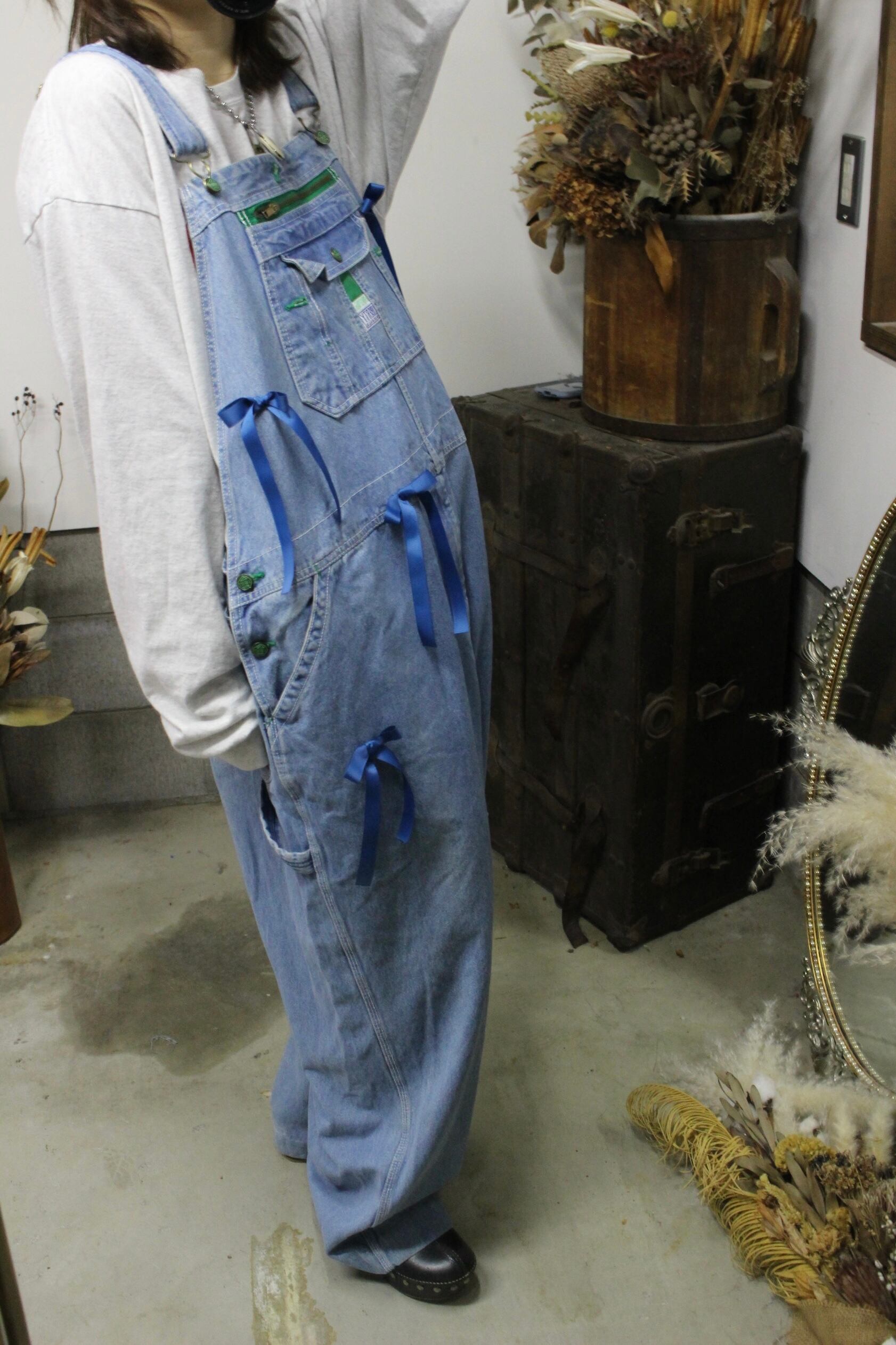 リボンの持つ独特の愛らしさと、オーバーオールとしての機能性を兼ね備えたデザインとなっています。