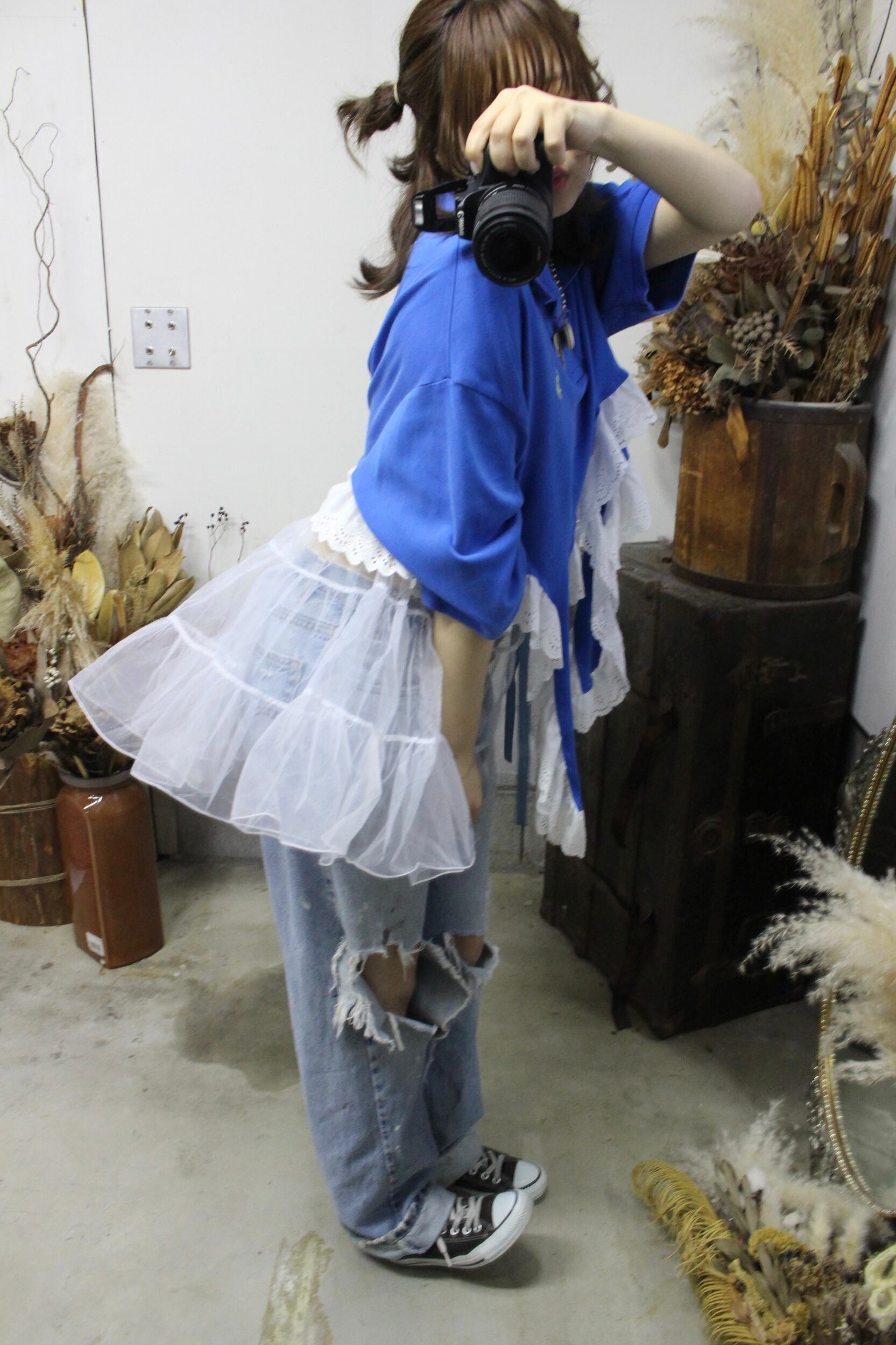 カジュアルなボディに幅広なコットンレースがたっぷり揺れて