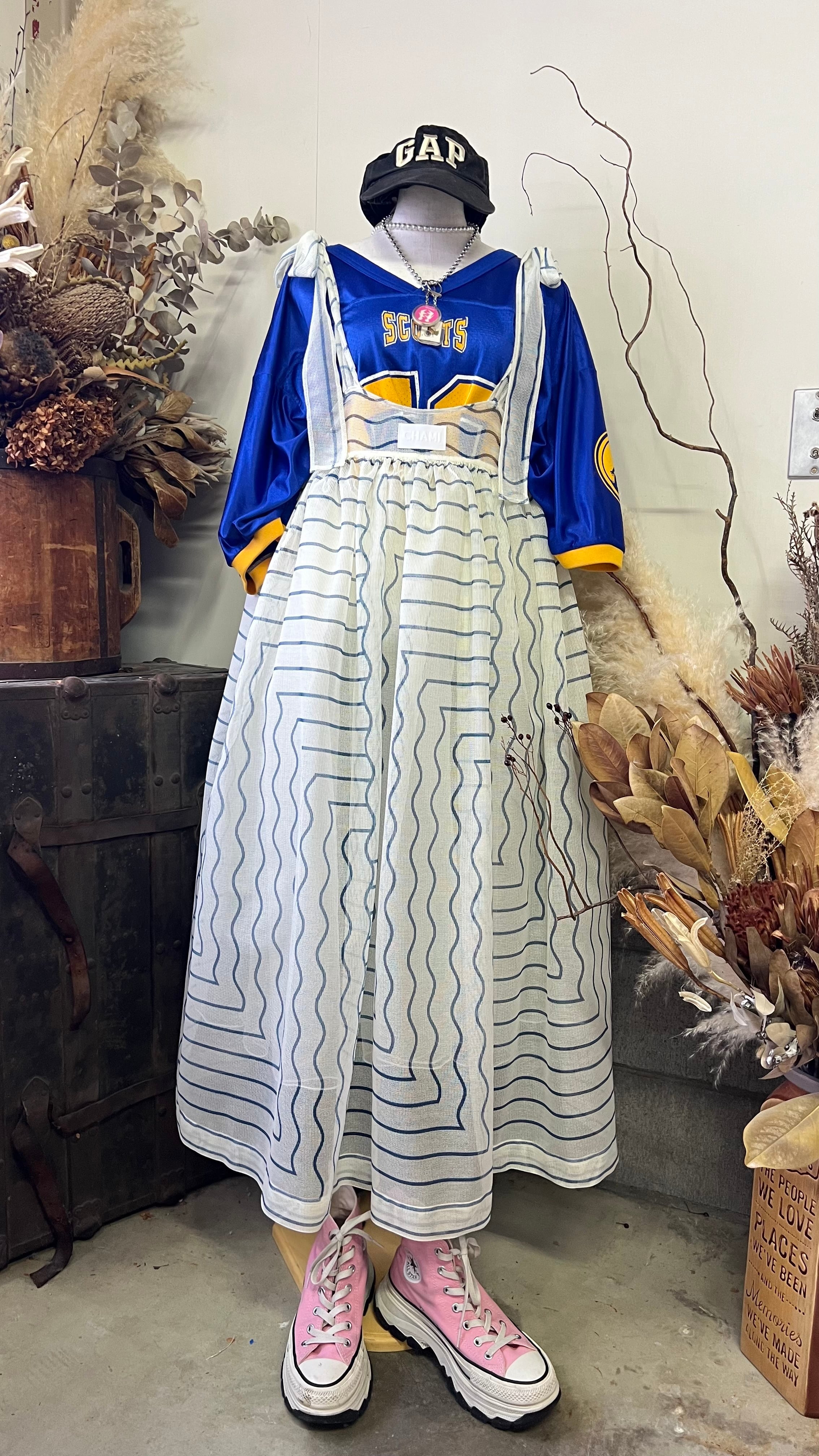 肩紐を長く取っているため、ダボっとしたメンズTなどを重ねたり