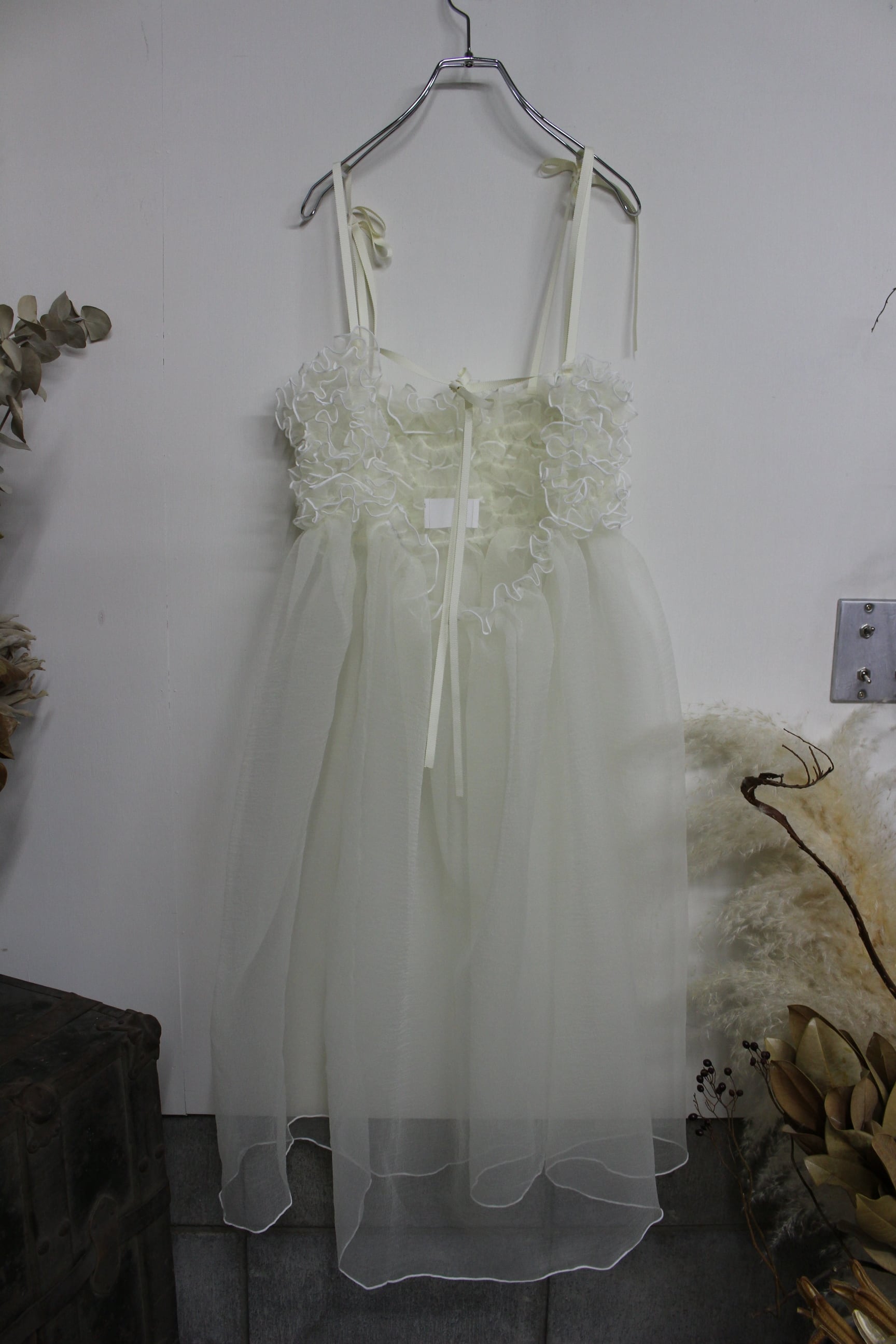 ワッシャー加工が施されたオーガンジーを使用して制作したキャミワンピースです。