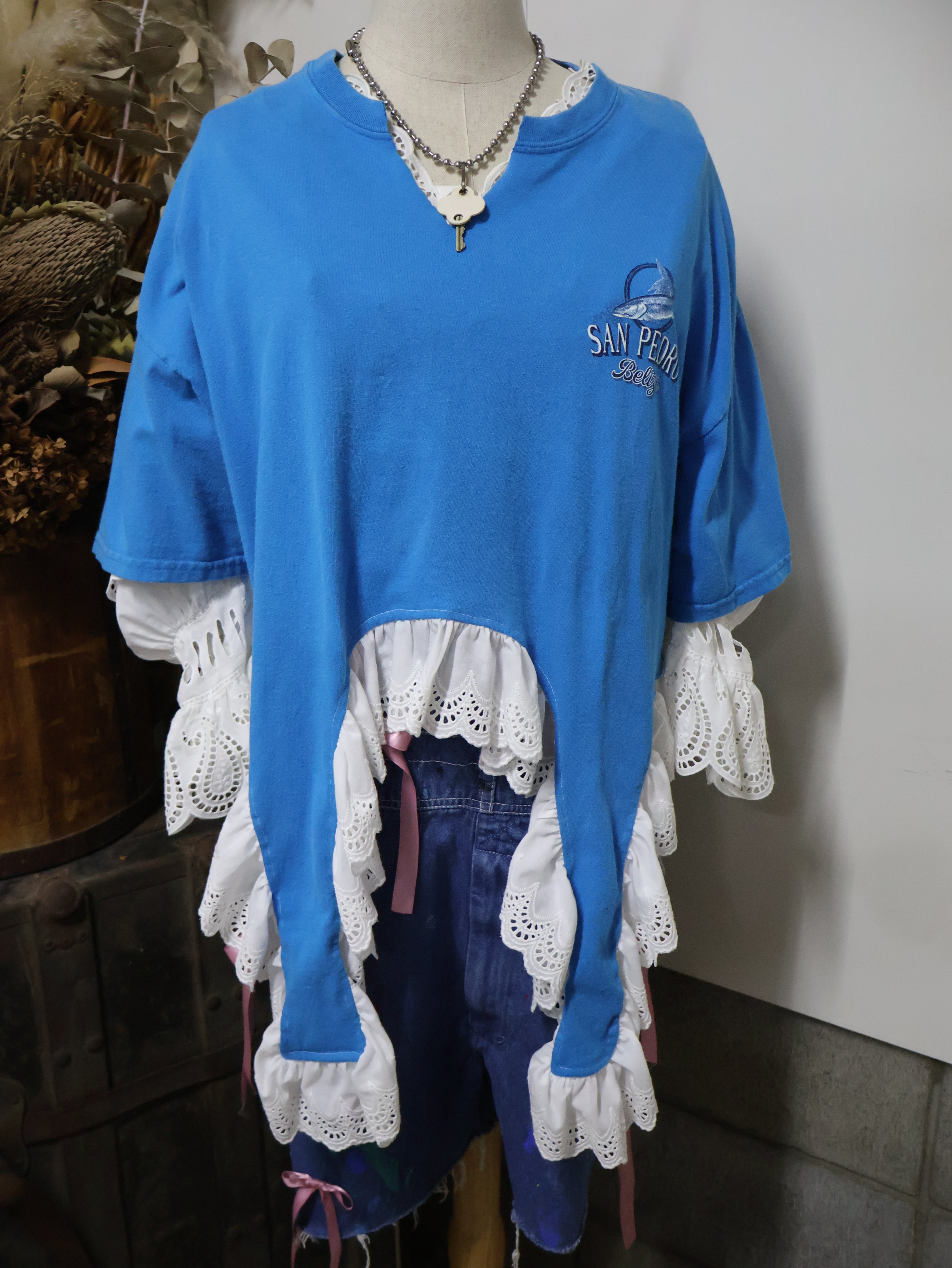 カジュアルなボディに幅広なコットンレースがたっぷり揺れて