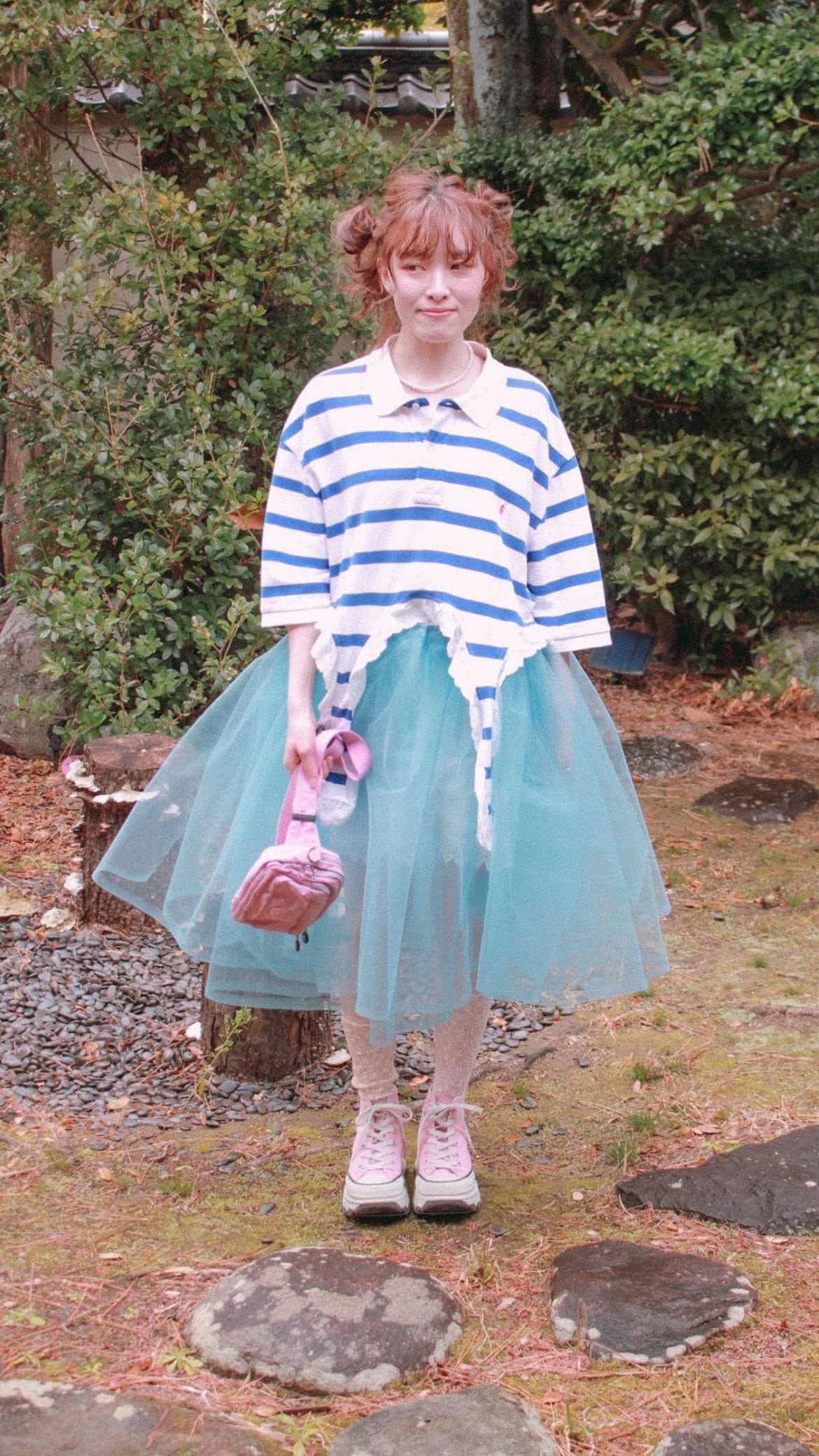 裾にデザインがあるため、着るだけで完成するアイテムです。