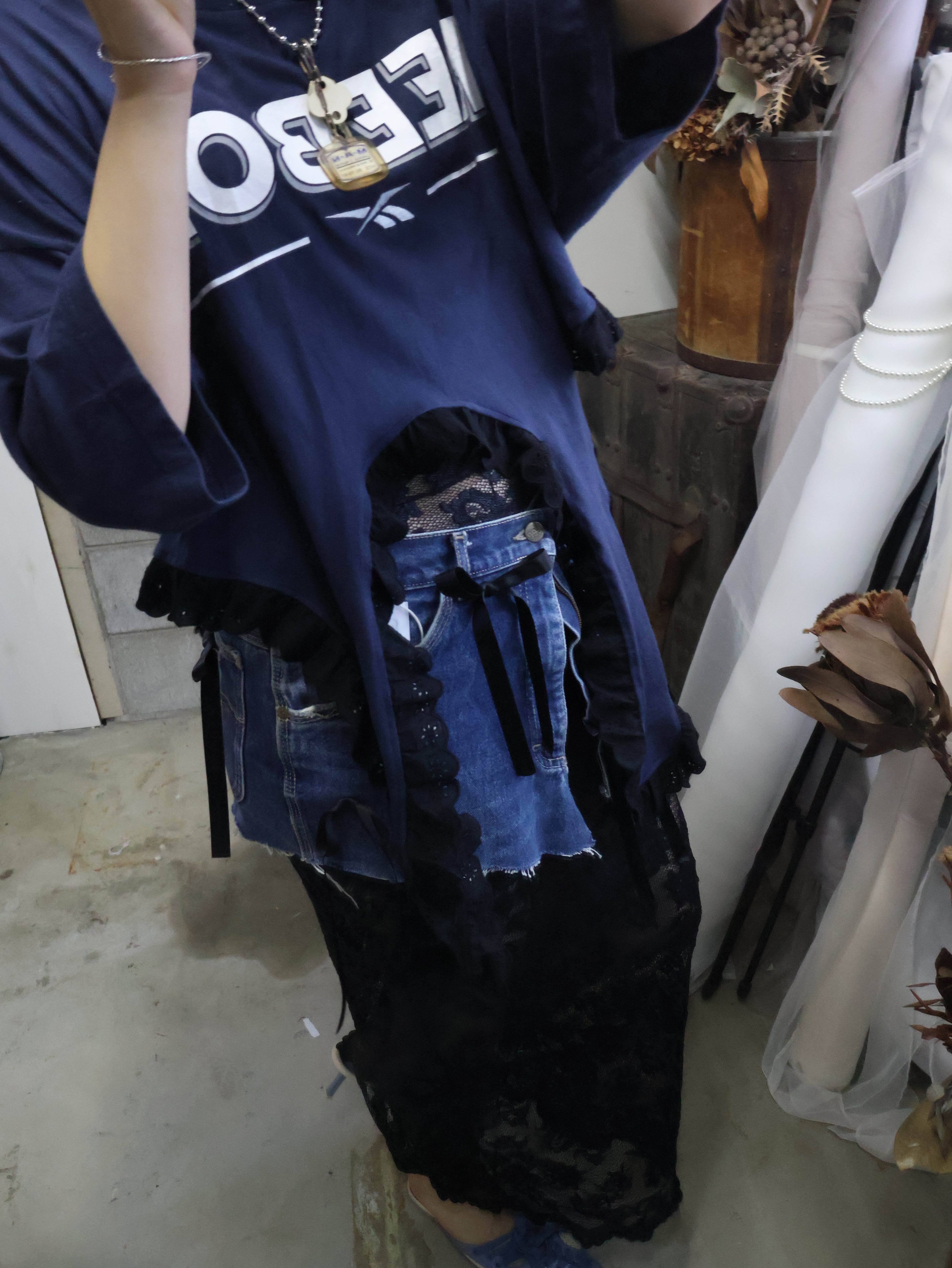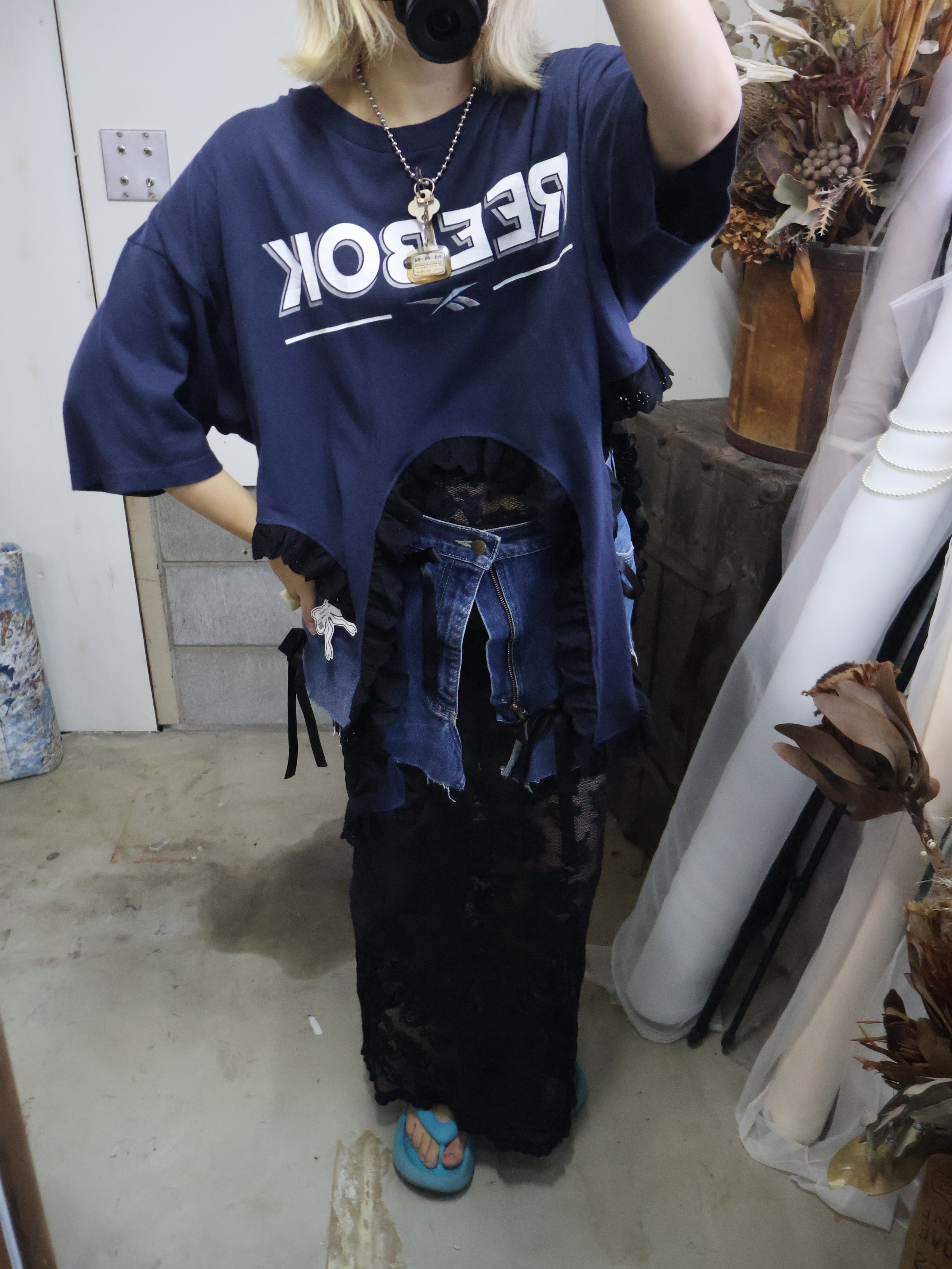 Vintageのガーターベルトをtシャツにレイヤードして着用していた